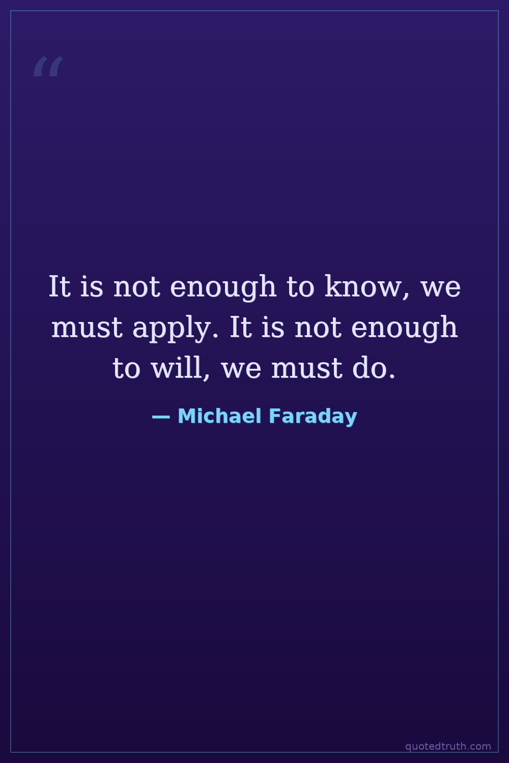 It is not enough to know, we must apply. It is not enough to will, we must do.