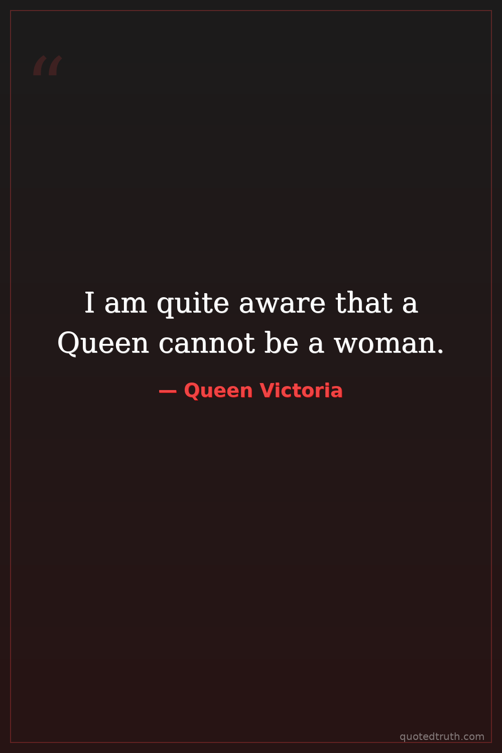 I am quite aware that a Queen cannot be a woman.