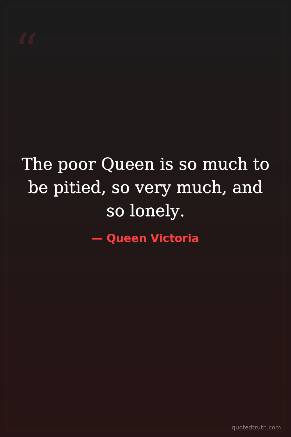 The poor Queen is so much to be pitied, so very much, and so lonely.