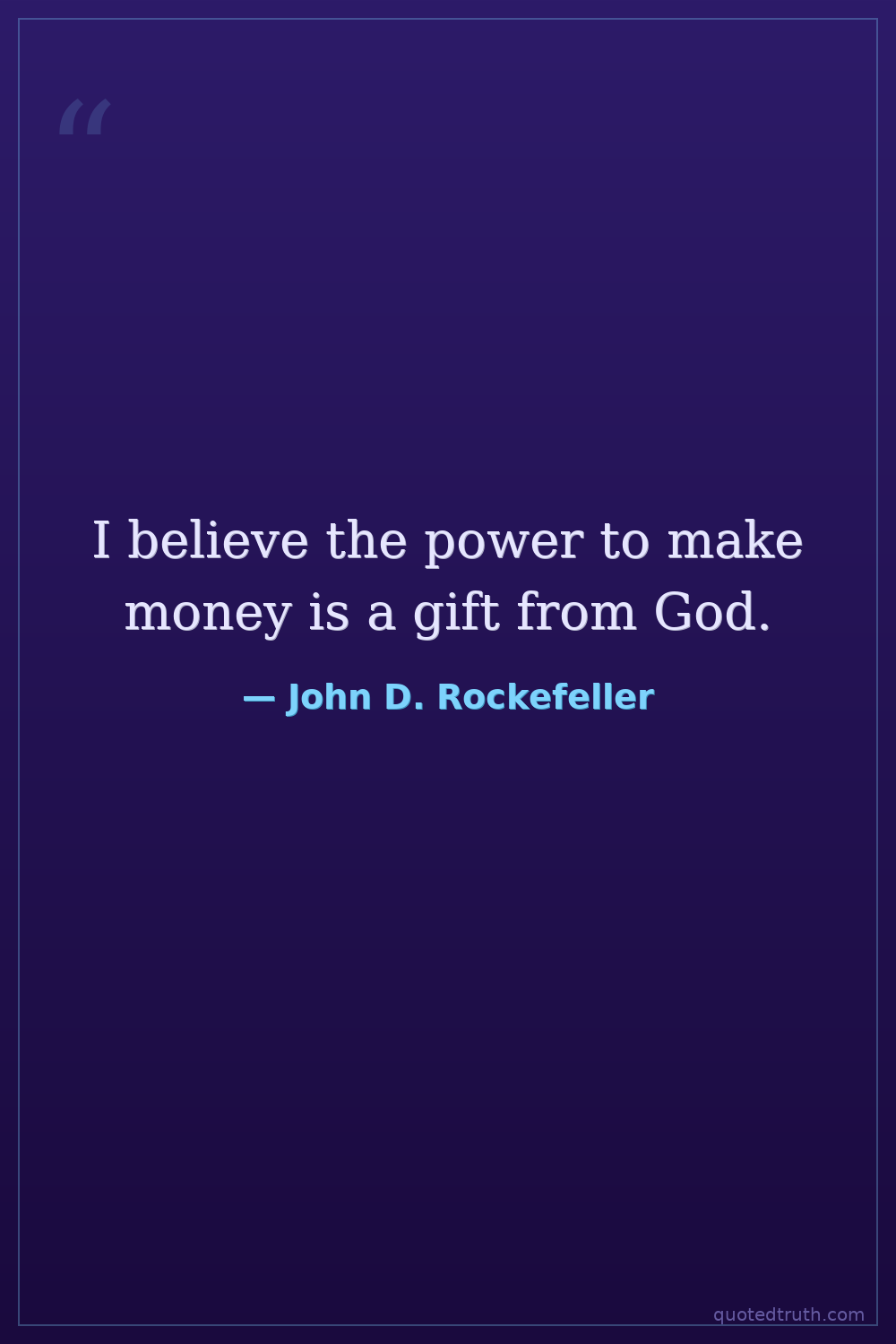 "God gave me my money. I believe the power to make money is a gift from God, to be developed and used to the best of our ability for the good of mankind. Having been endowed with the gift I possess, I …"