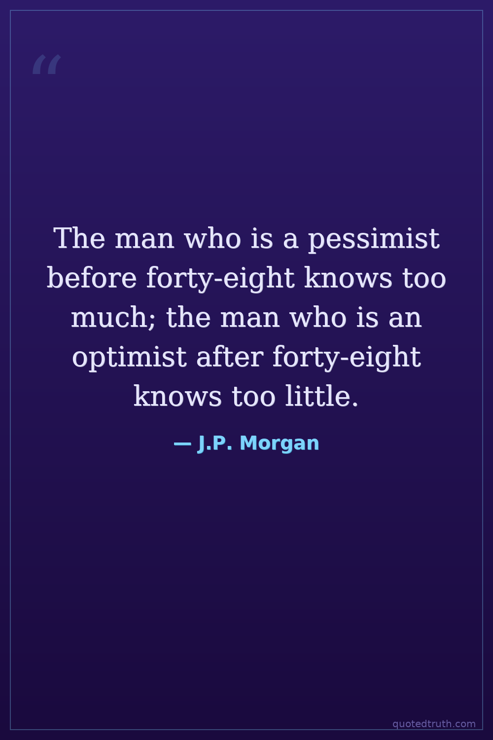 The man who is a pessimist before forty-eight knows too much; the man who is an optimist after forty-eight knows too little.