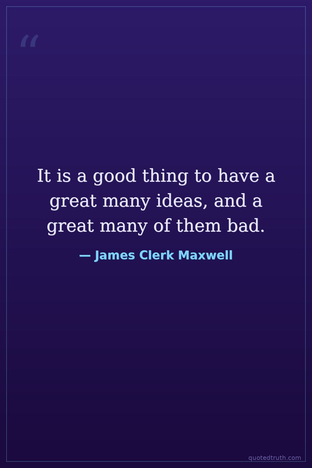 It is a good thing to have a great many ideas, and a great many of them bad.