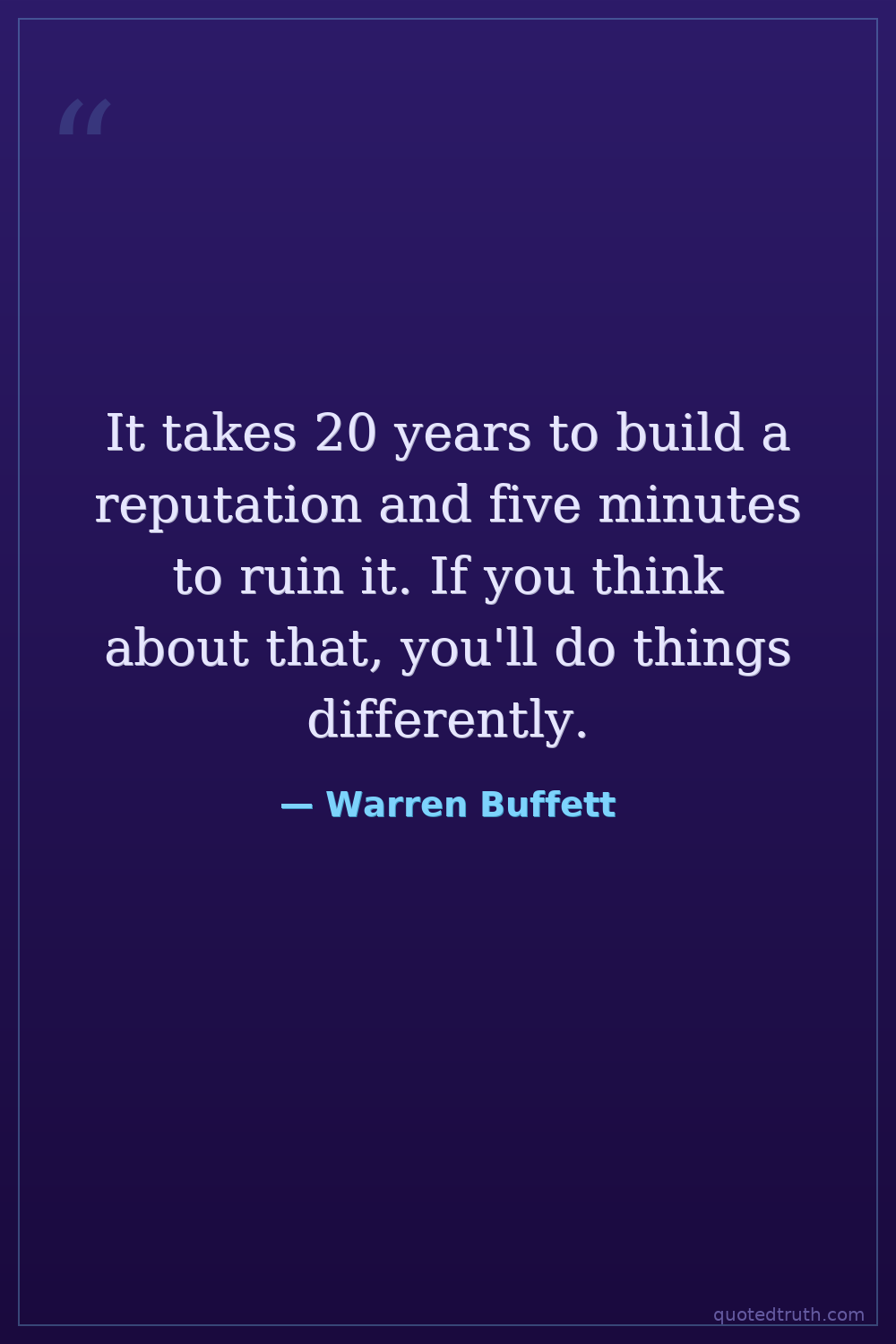 It takes 20 years to build a reputation and five minutes to ruin it. If you think about that, you'll do things differently.