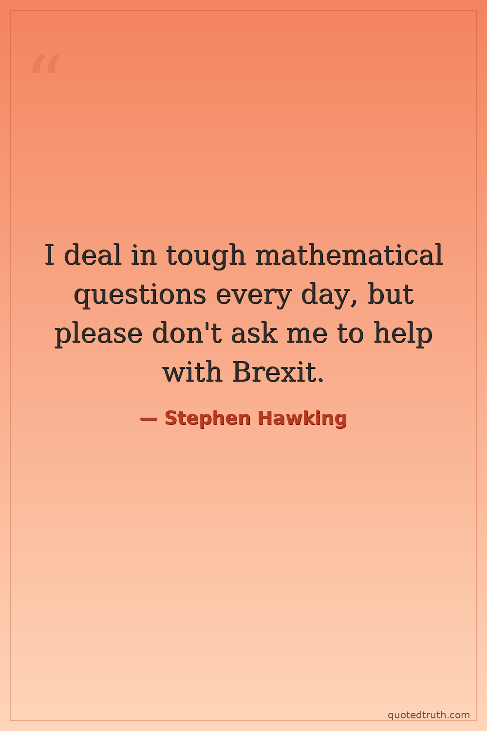 I deal in tough mathematical questions every day, but please don't ask me to help with Brexit.