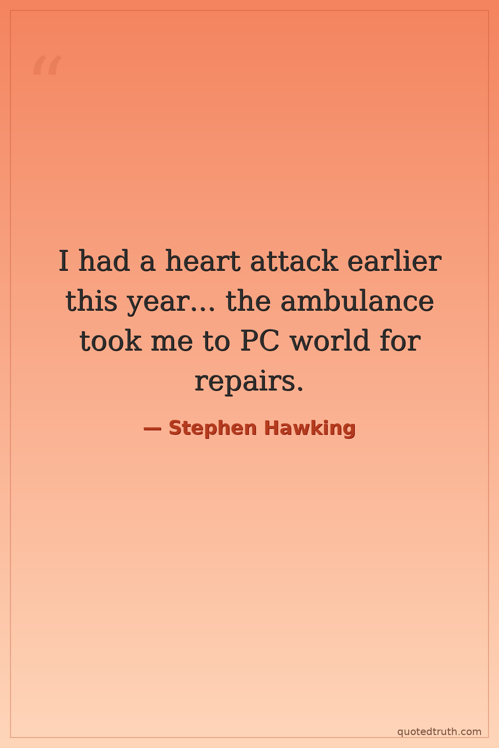 I had a heart attack earlier this year... the ambulance took me to PC world for repairs.