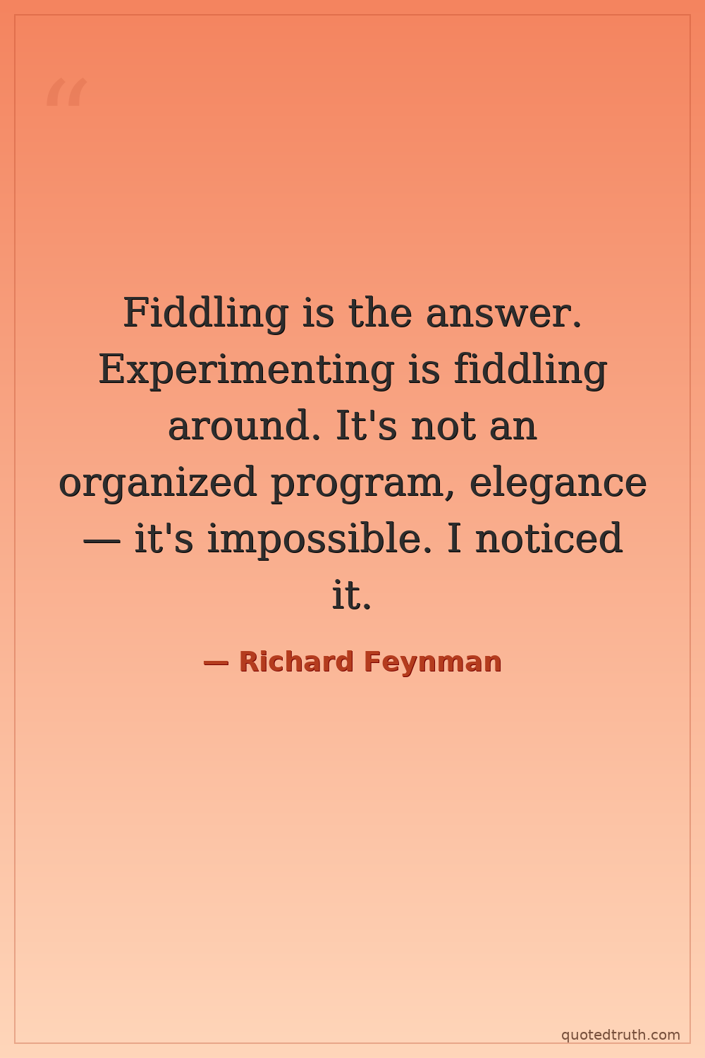Fiddling is the answer. Experimenting is fiddling around. It's not an organized program, elegance — it's impossible. I noticed it.