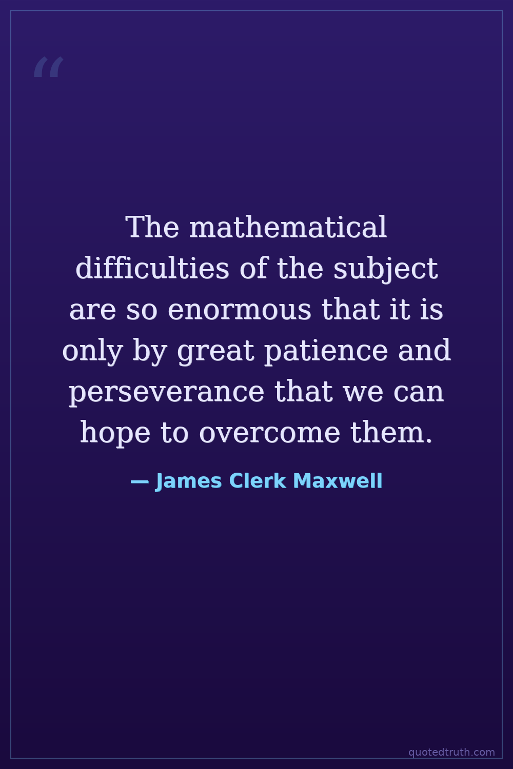 The mathematical difficulties of the subject are so enormous that it is only by great patience and perseverance that we can hope to overcome them.