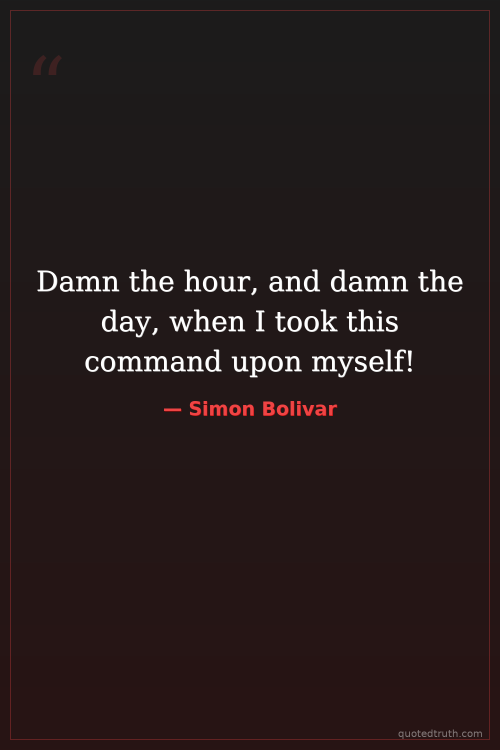 Damn the hour, and damn the day, when I took this command upon myself!