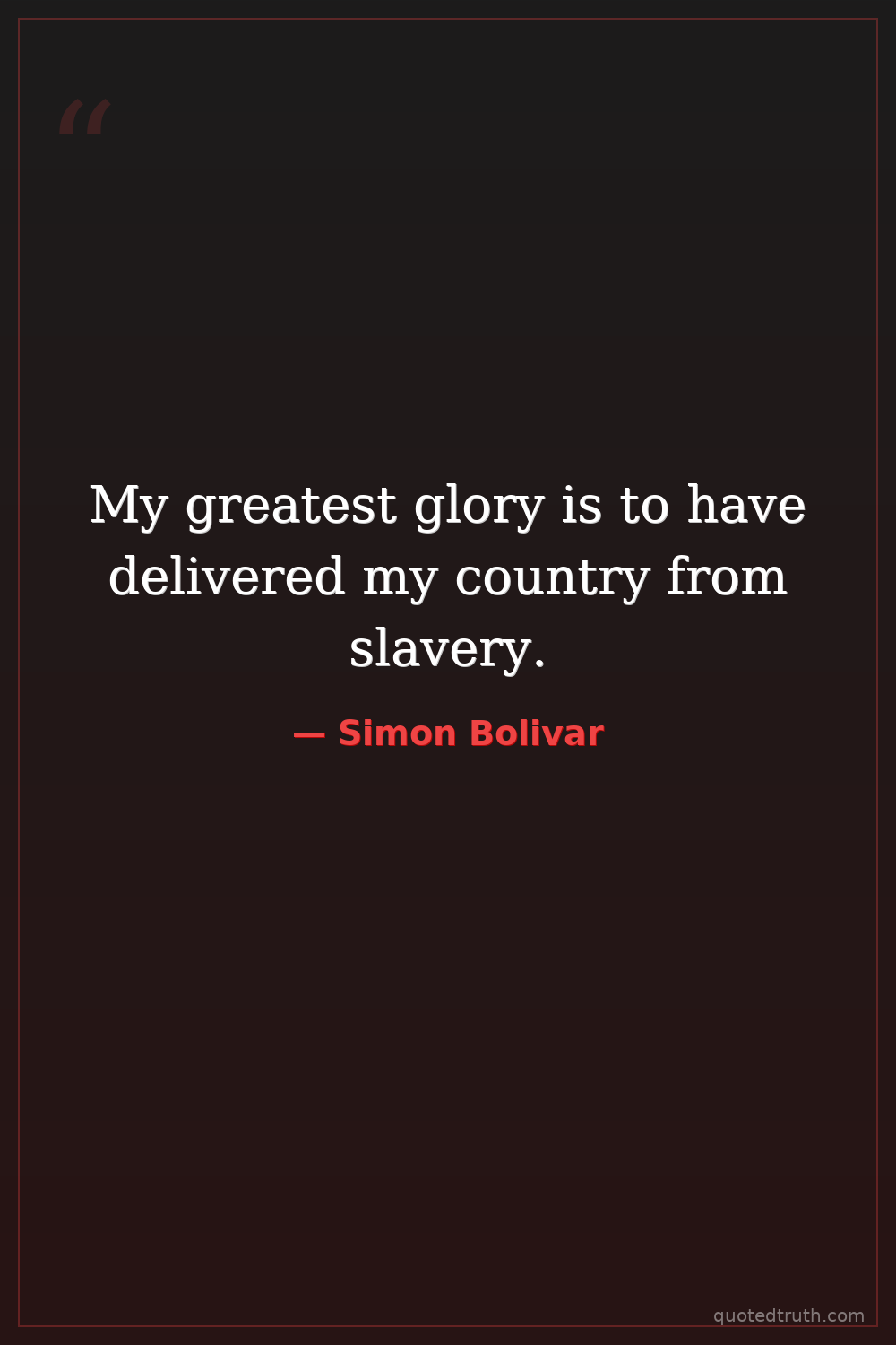 My greatest glory is to have delivered my country from slavery.