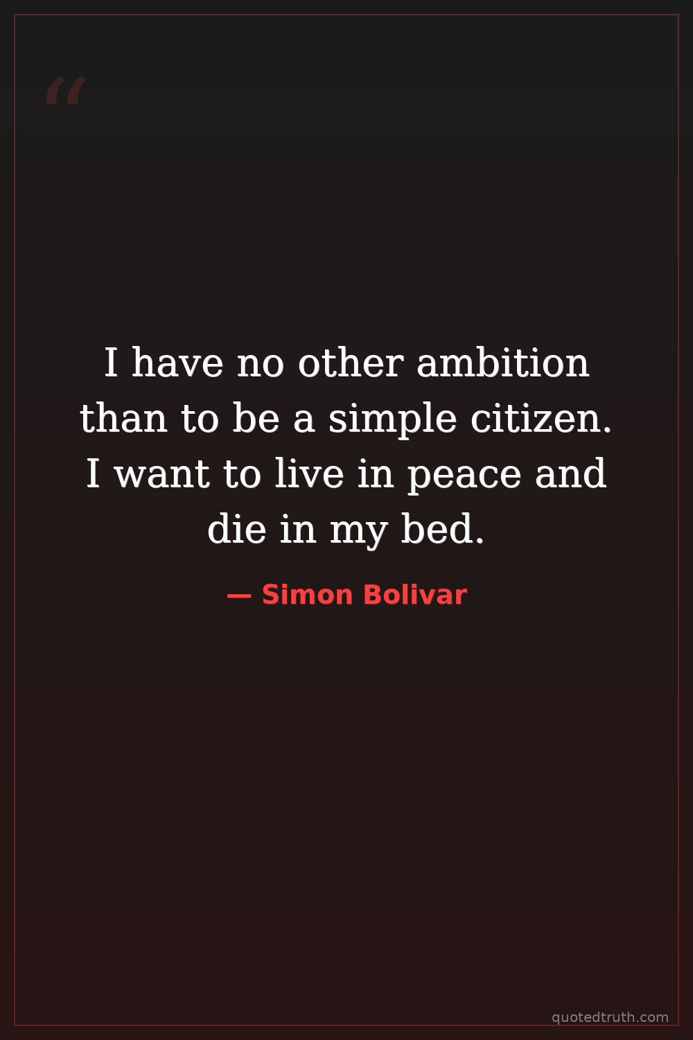 I have no other ambition than to be a simple citizen. I want to live in peace and die in my bed.