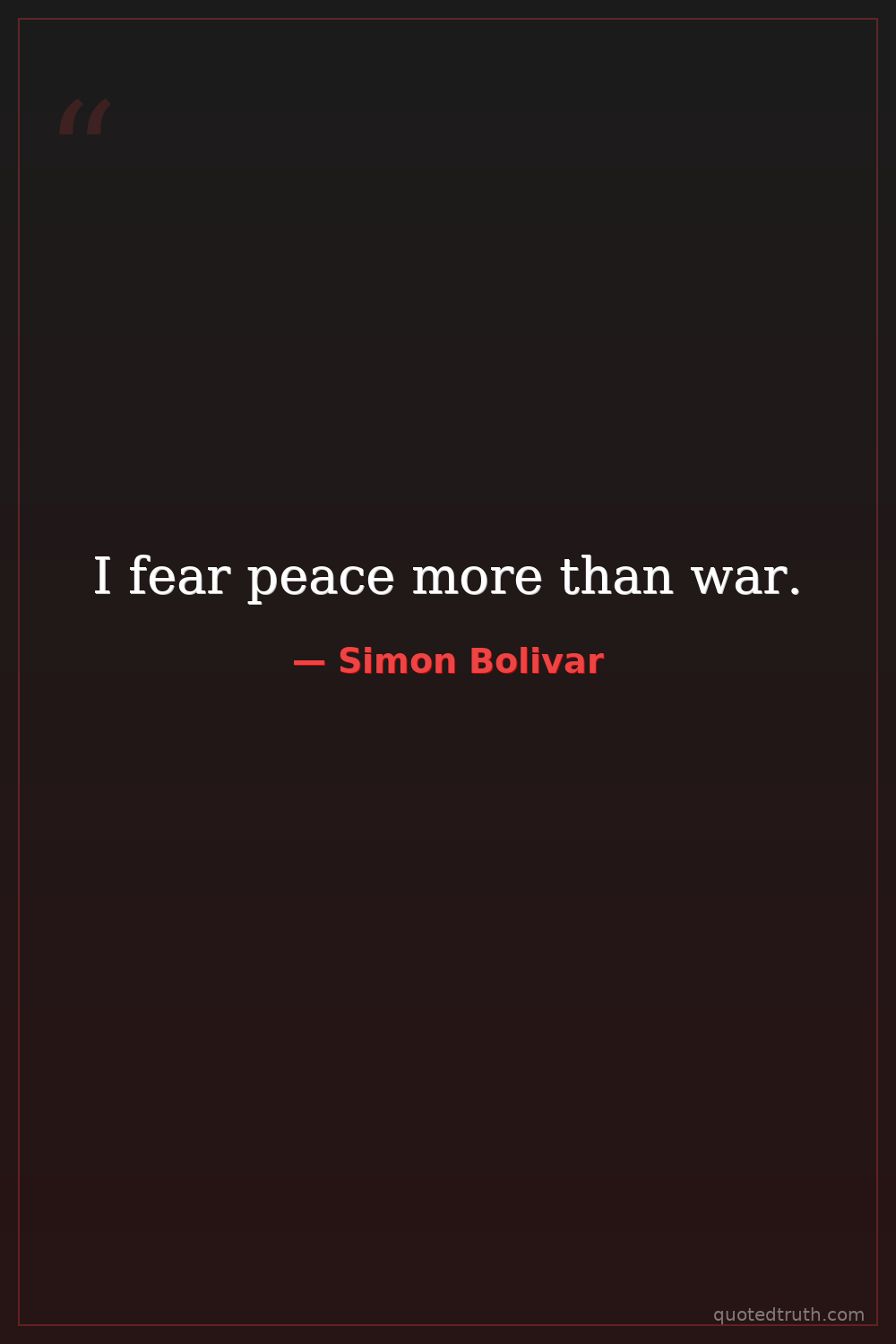 I fear peace more than war.