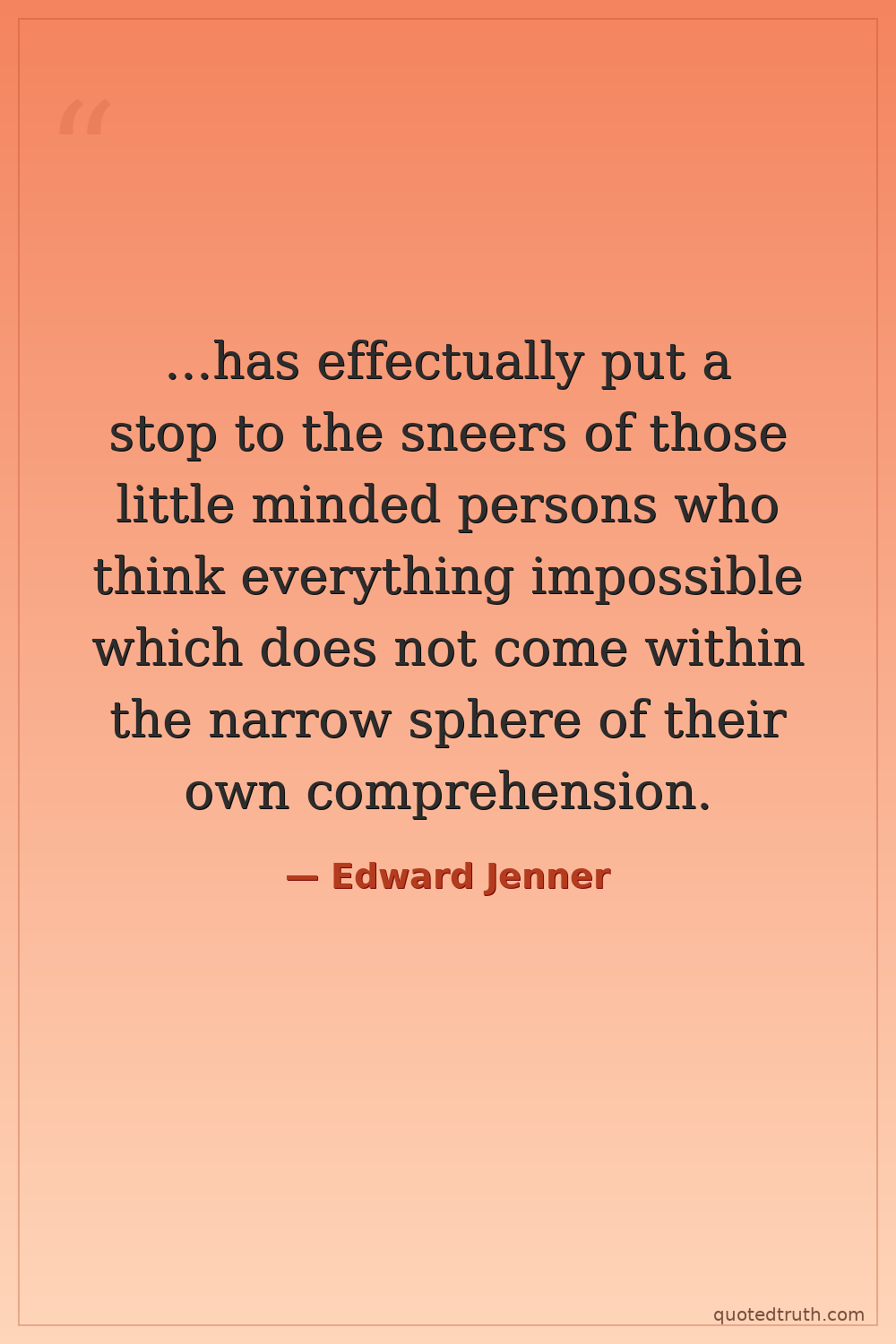...has effectually put a stop to the sneers of those little minded persons who think everything impossible which does not come within the narrow sphere of their own comprehension.