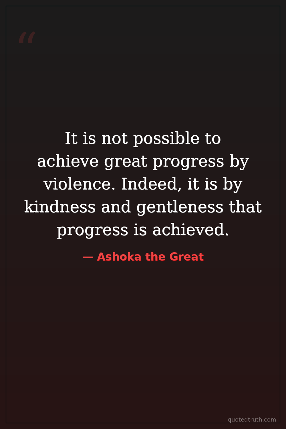 It is not possible to achieve great progress by violence. Indeed, it is by kindness and gentleness that progress is achieved.