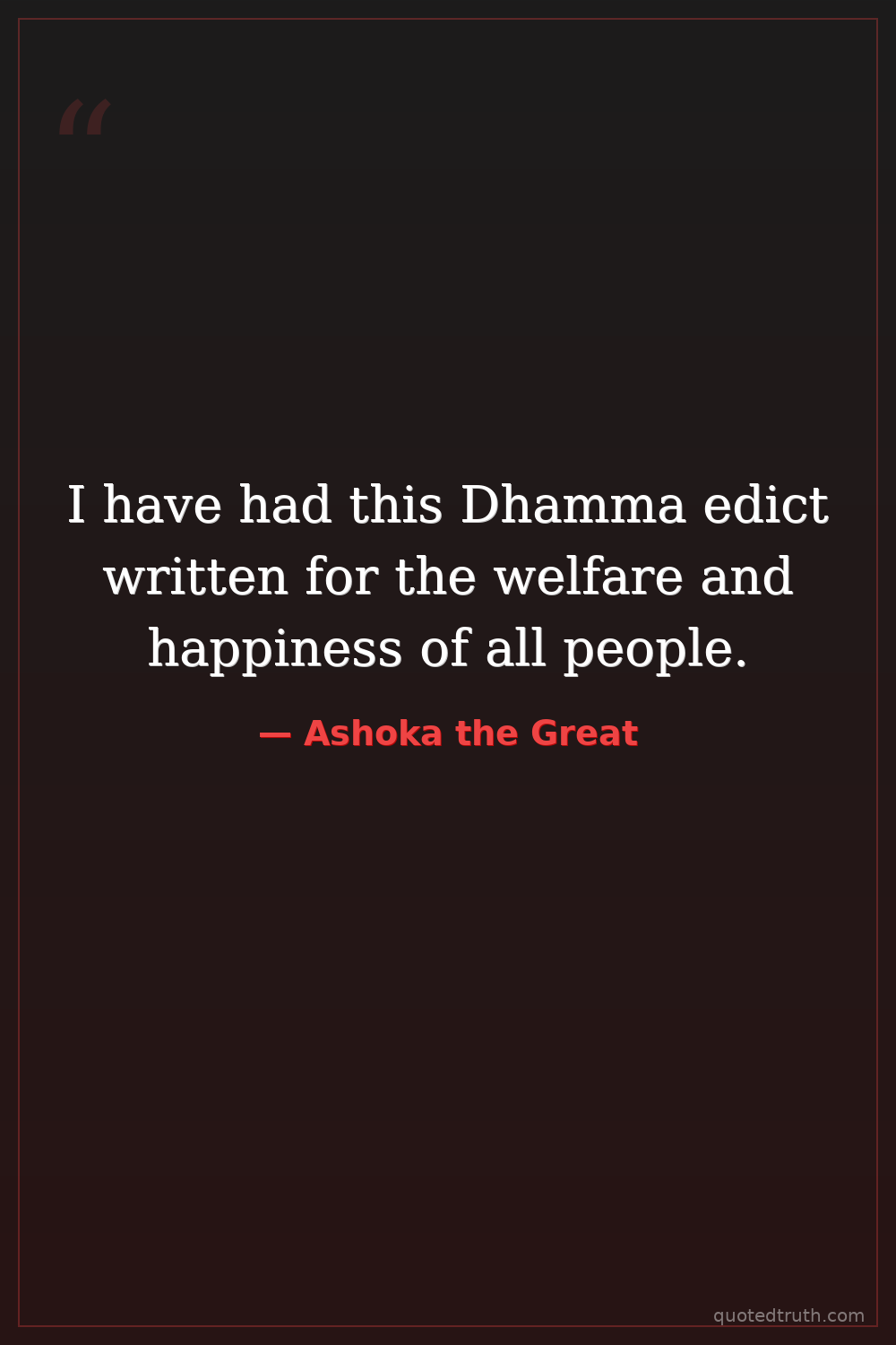 Controversial"The beloved of the gods, king Piyadasi, speaks thus: I have had this Dhamma edict written that it may last long and that my descendants may act in conformity with it."