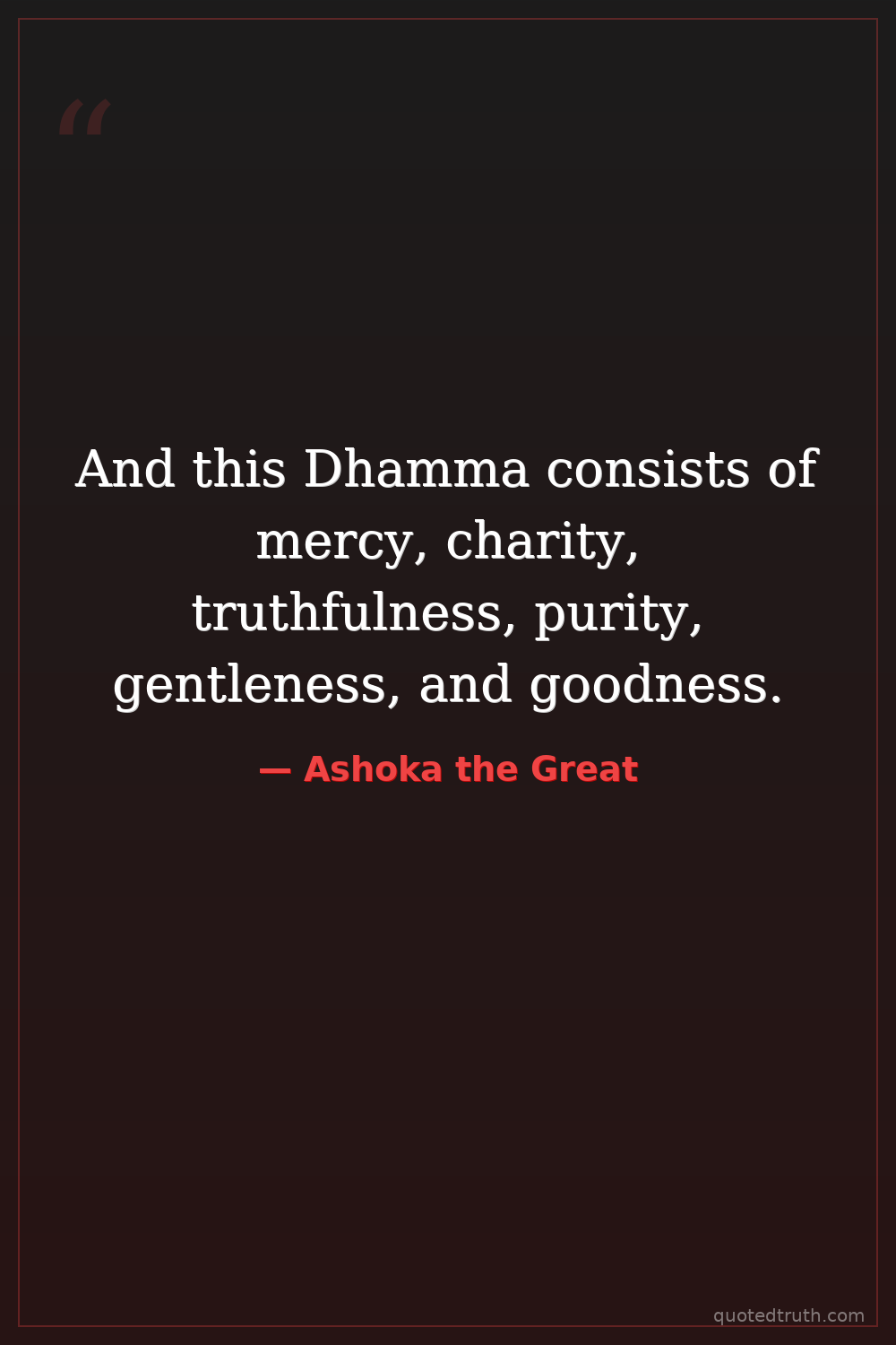 Controversial"The beloved of the gods does not consider glory and fame to be of great account unless they are achieved through having my subjects respect Dhamma and practice Dhamma."