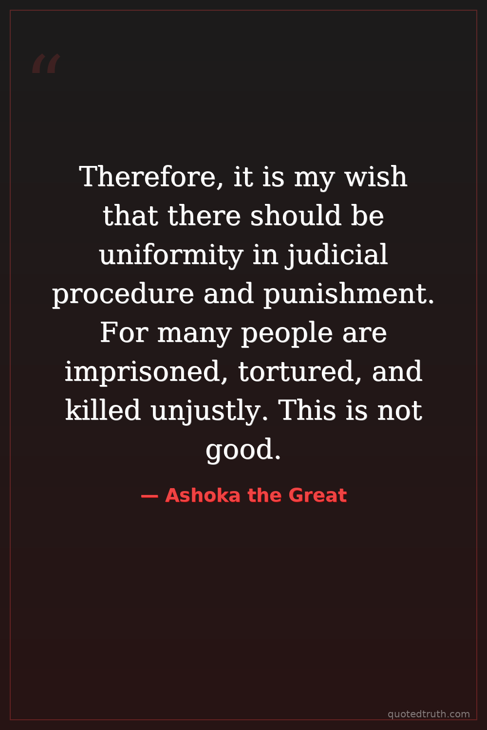 Therefore, it is my wish that there should be uniformity in judicial procedure and punishment. For many people are imprisoned, tortured, and killed unjustly. This is not good.