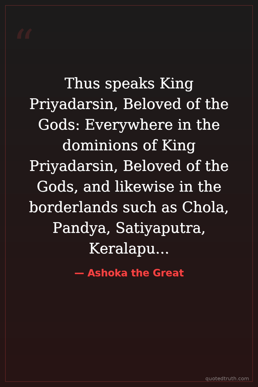 Thus speaks King Priyadarsin, Beloved of the Gods: Everywhere in the dominions of King Priyadarsin, Beloved of the Gods, and likewise in the borderlands such as Chola, Pandya, Satiyaputra, Keralaputra, as far as Tamraparni, and even in the kingdom of the Yavana king named Antiochus, and among the kings who are neighbors of Antiochus—everywhere has King Priyadarsin, Beloved of the Gods, made arrangements for two kinds of medical treatment: medical treatment for humans and medical treatment for animals.