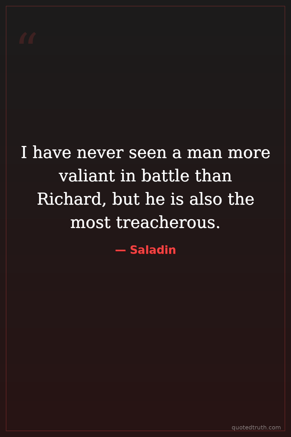 I have never seen a man more valiant in battle than Richard, but he is also the most treacherous.