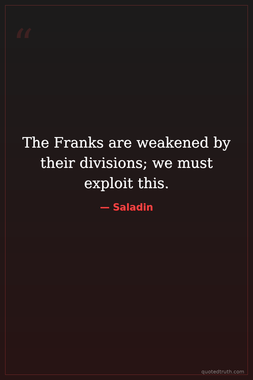 A strategic observation on the internal conflicts among the Crusaders.