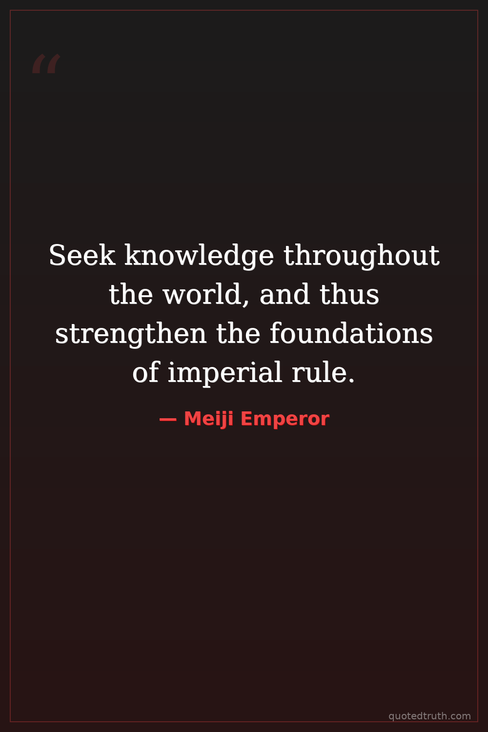 Shocking"Knowledge shall be sought throughout the world so as to strengthen the foundations of Imperial rule."