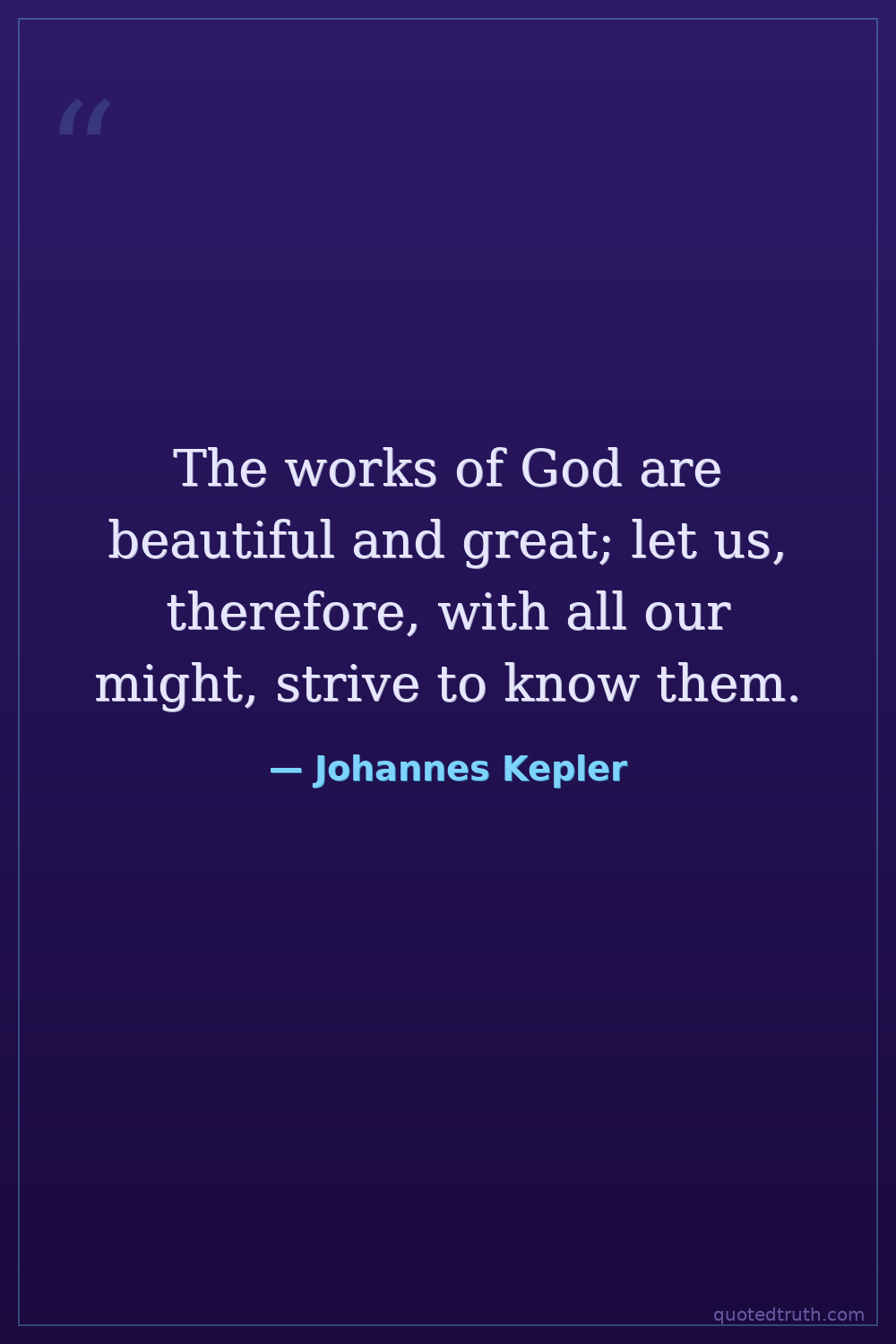 The works of God are beautiful and great; let us, therefore, with all our might, strive to know them.