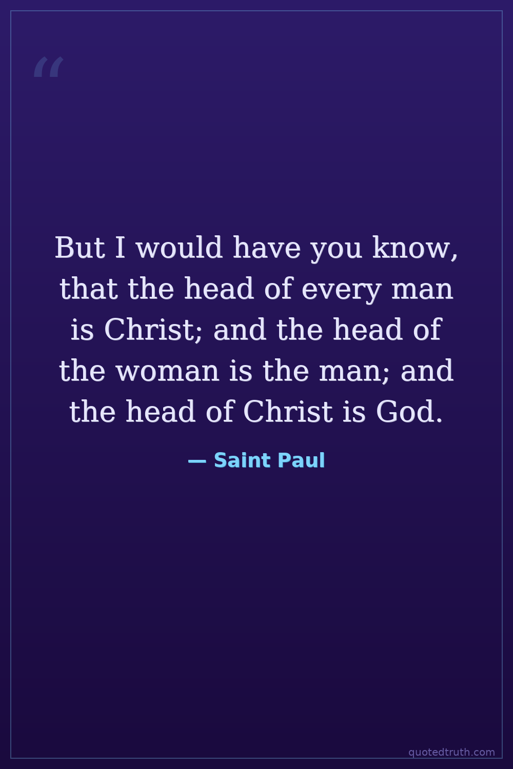 But I would have you know, that the head of every man is Christ; and the head of the woman is the man; and the head of Christ is God.