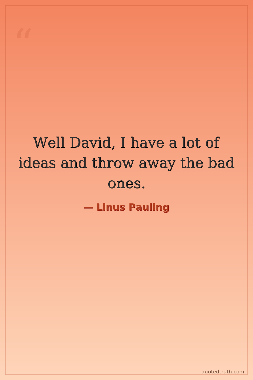Well David, I have a lot of ideas and throw away the bad ones.