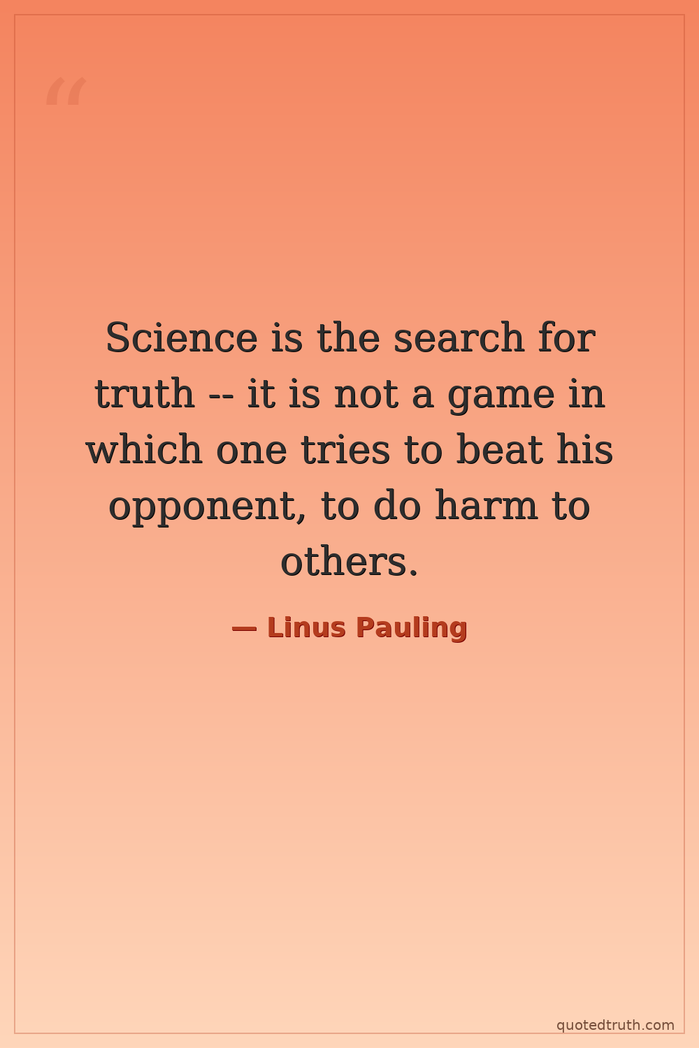 Science is the search for truth -- it is not a game in which one tries to beat his opponent, to do harm to others.