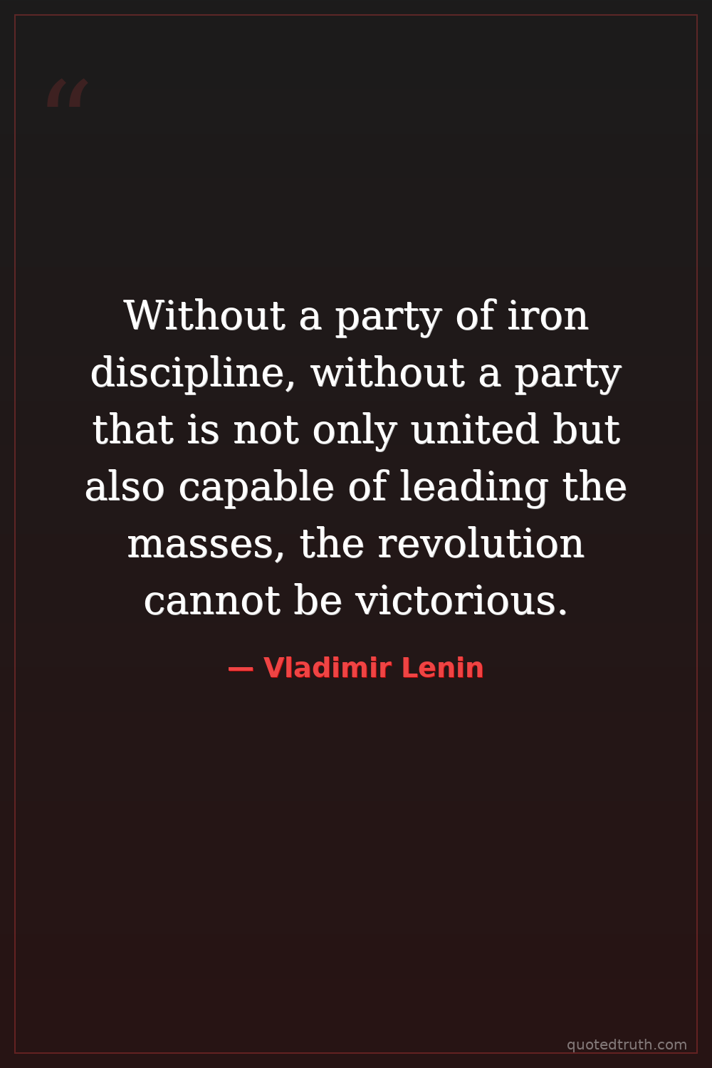 Without a party of iron discipline, without a party that is not only united but also capable of leading the masses, the revolution cannot be victorious.