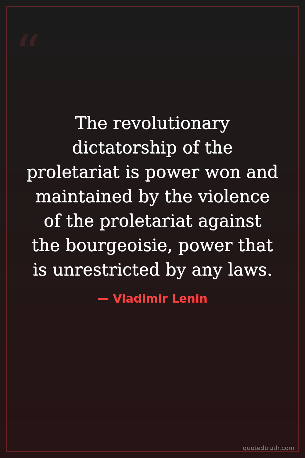 Shocking"The dictatorship of the proletariat is a persistent struggle—bloody and bloodless, violent and peaceful, military and economic, educational and administrative—against the forces and traditions of the …"
