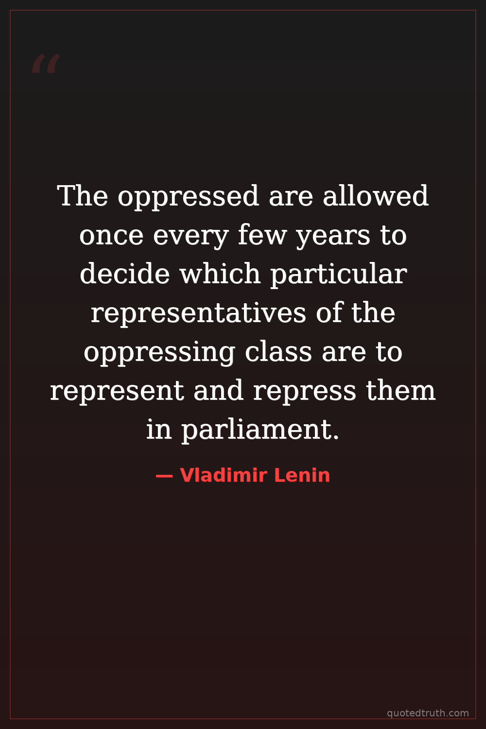 The oppressed are allowed once every few years to decide which particular representatives of the oppressing class are to represent and repress them in parliament.