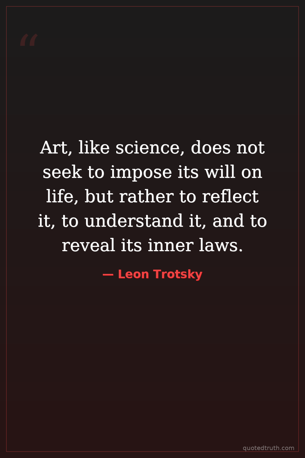 Art, like science, does not seek to impose its will on life, but rather to reflect it, to understand it, and to reveal its inner laws.