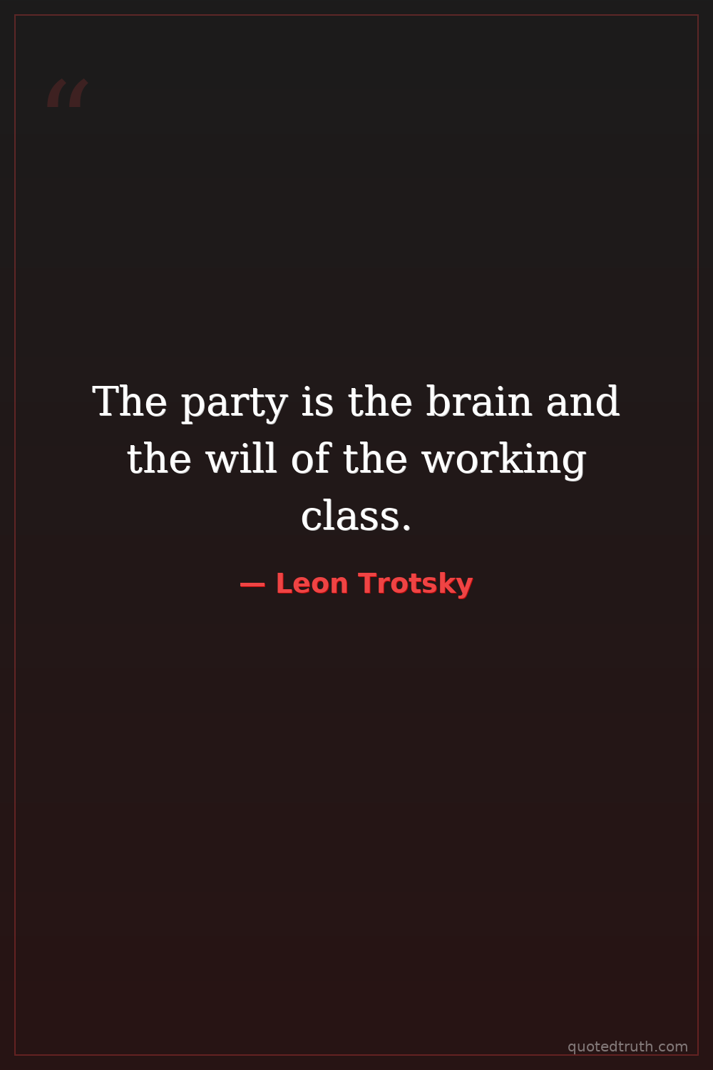 "The working class needs a party, as a lever for the conquest of power, but it needs a party that is not afraid to lead it to power."
