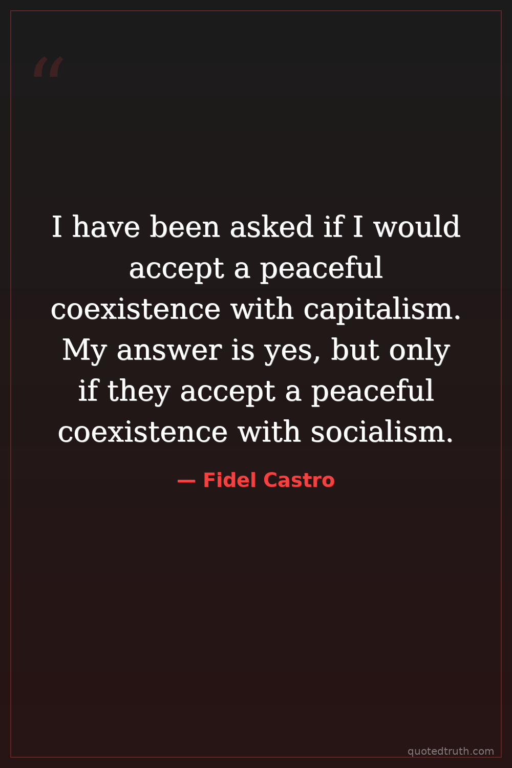 I have been asked if I would accept a peaceful coexistence with capitalism. My answer is yes, but only if they accept a peaceful coexistence with socialism.
