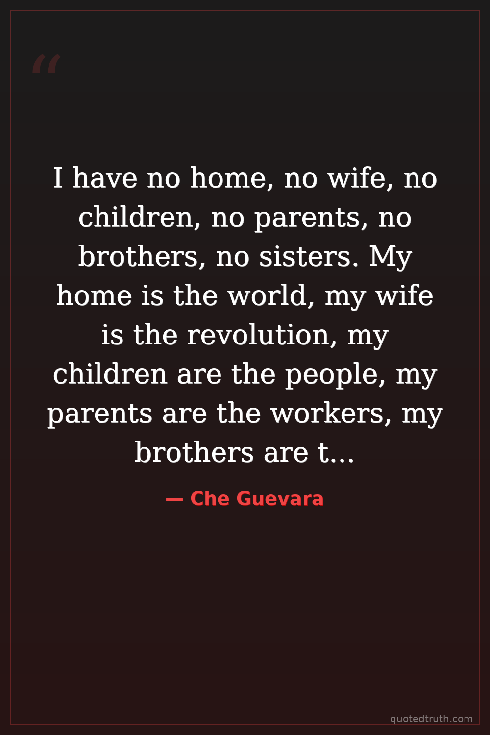 I have no home, no wife, no children, no parents, no brothers, no sisters. My home is the world, my wife is the revolution, my children are the people, my parents are the workers, my brothers are the oppressed, my sisters are the exploited.