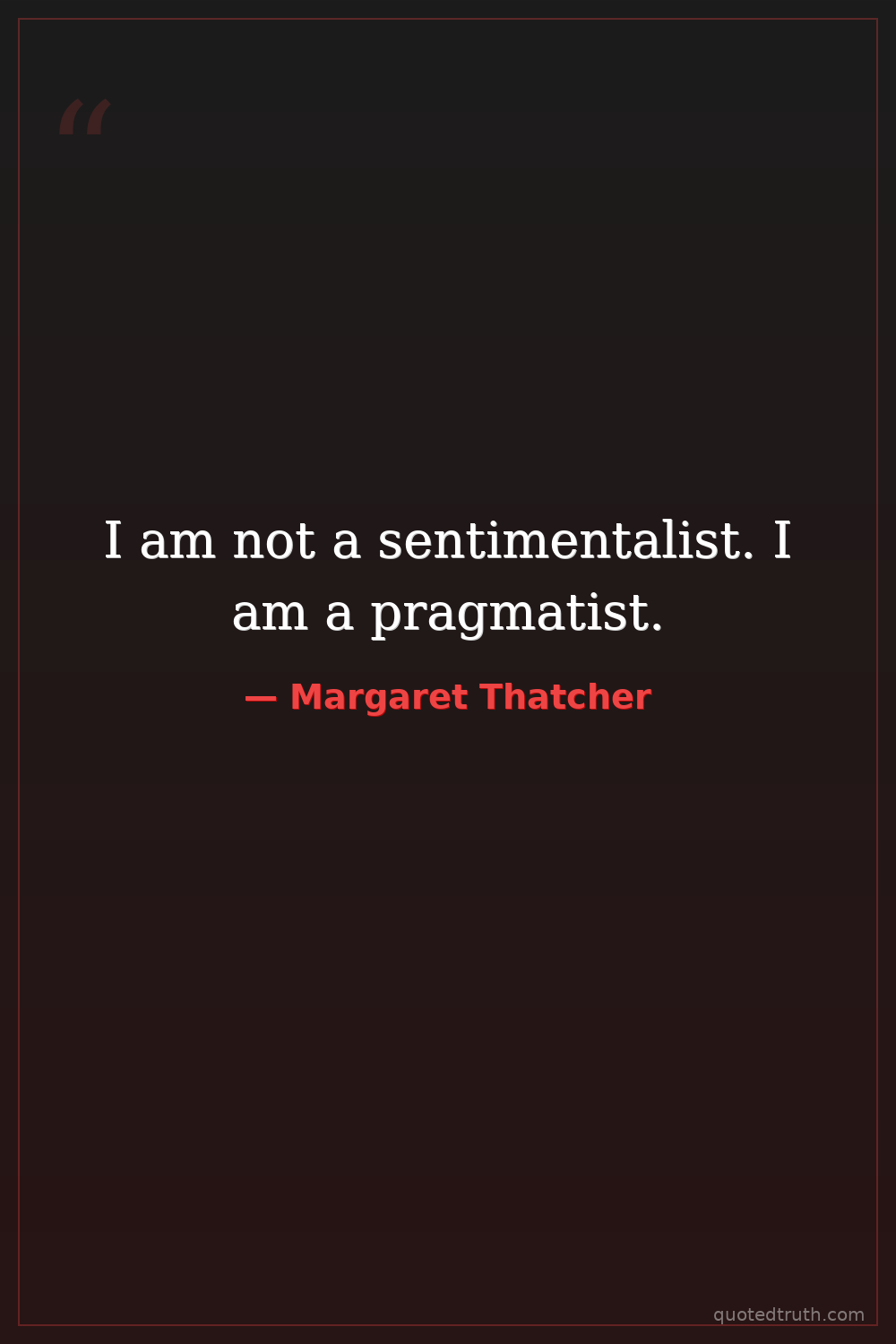 I am not a sentimentalist. I am a pragmatist.