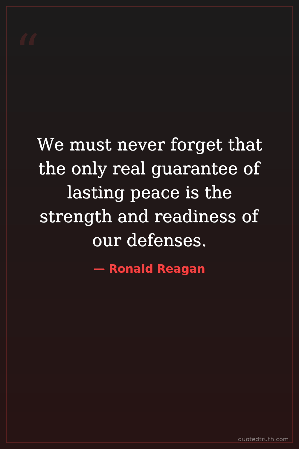 We must never forget that the only real guarantee of lasting peace is the strength and readiness of our defenses.