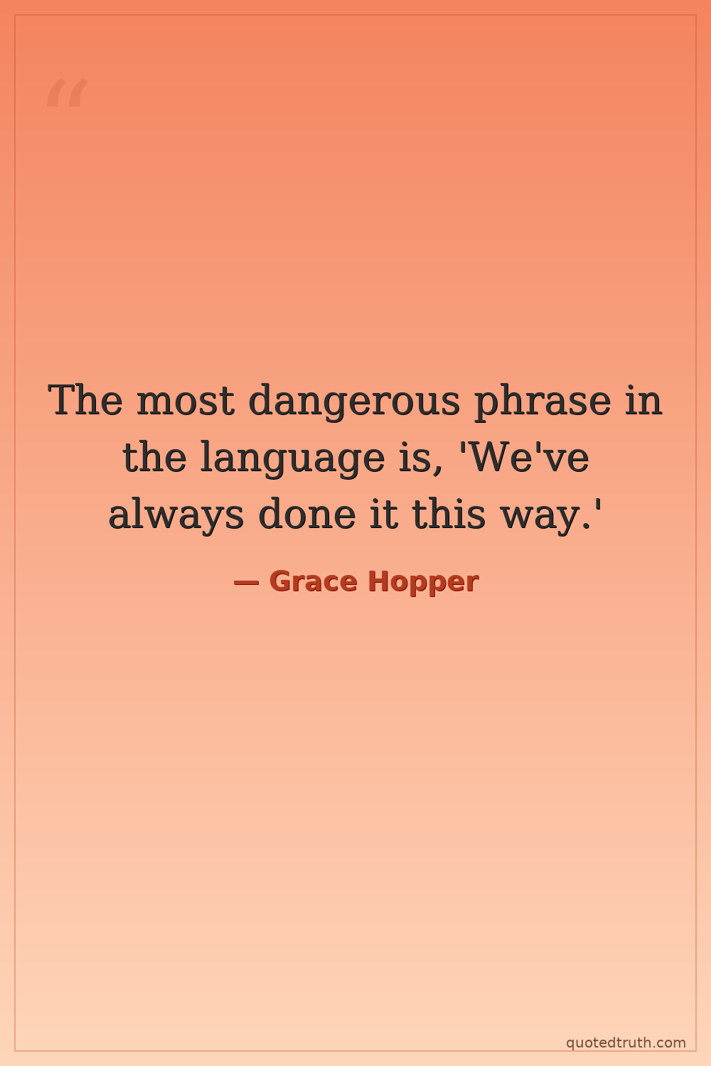The most dangerous phrase in the language is, 'We've always done it this way.'