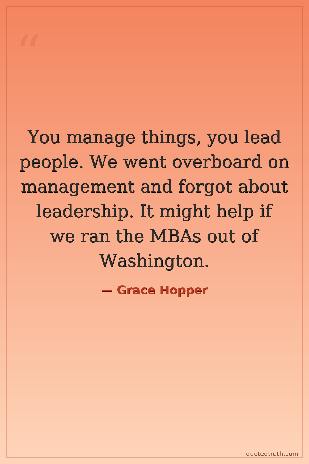 You manage things, you lead people. We went overboard on management and forgot about leadership. It might help if we ran the MBAs out of Washington.