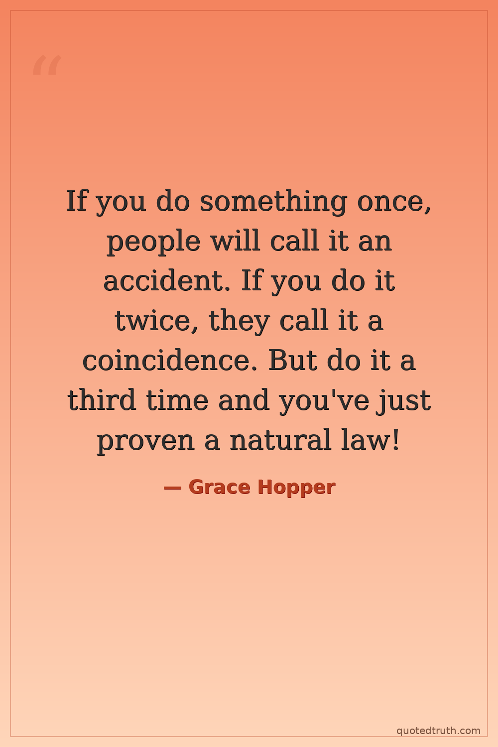 If you do something once, people will call it an accident. If you do it twice, they call it a coincidence. But do it a third time and you've just proven a natural law!