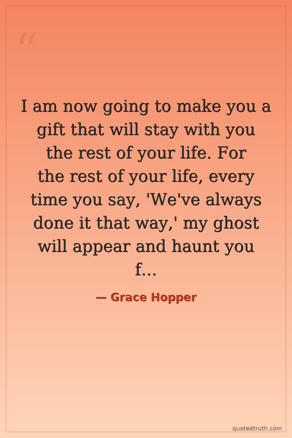 I am now going to make you a gift that will stay with you the rest of your life. For the rest of your life, every time you say, 'We've always done it that way,' my ghost will appear and haunt you for twenty-four hours.