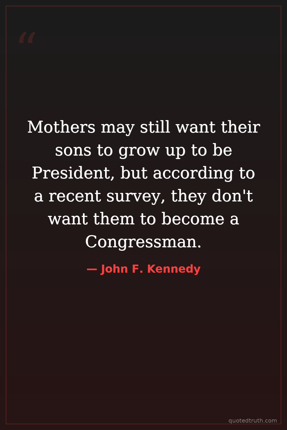 Mothers may still want their sons to grow up to be President, but according to a recent survey, they don't want them to become a Congressman.