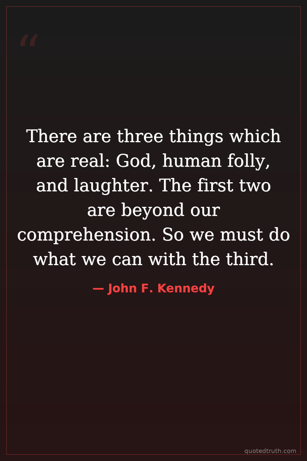 There are three things which are real: God, human folly, and laughter. The first two are beyond our comprehension. So we must do what we can with the third.
