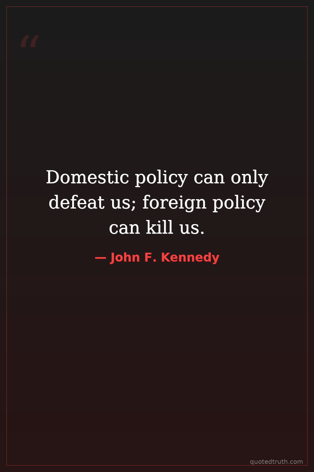 Domestic policy can only defeat us; foreign policy can kill us.
