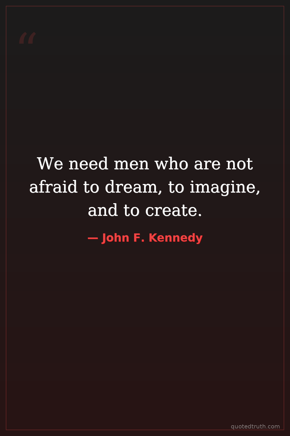 We need men who are not afraid to dream, to imagine, and to create.