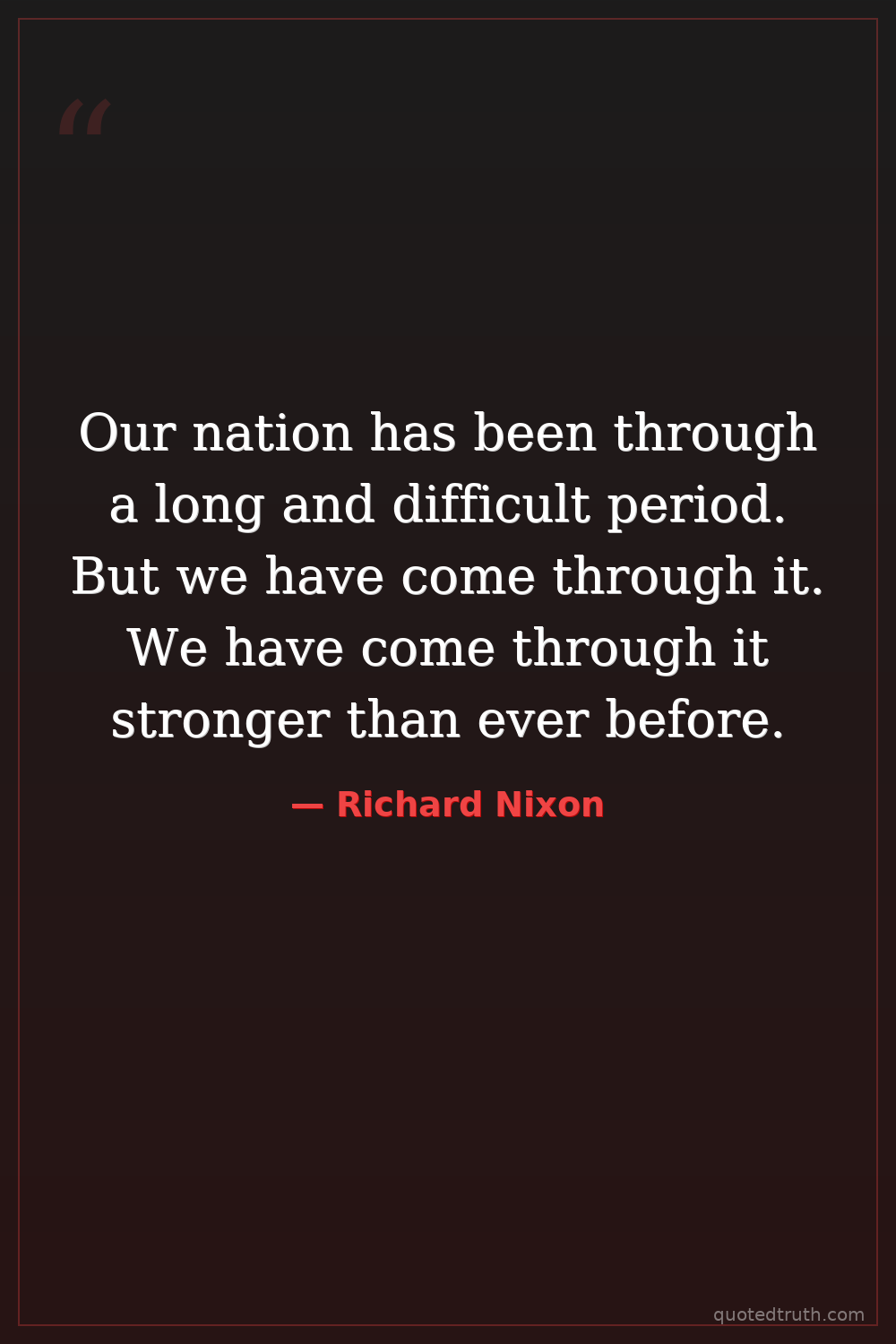Our nation has been through a long and difficult period. But we have come through it. We have come through it stronger than ever before.