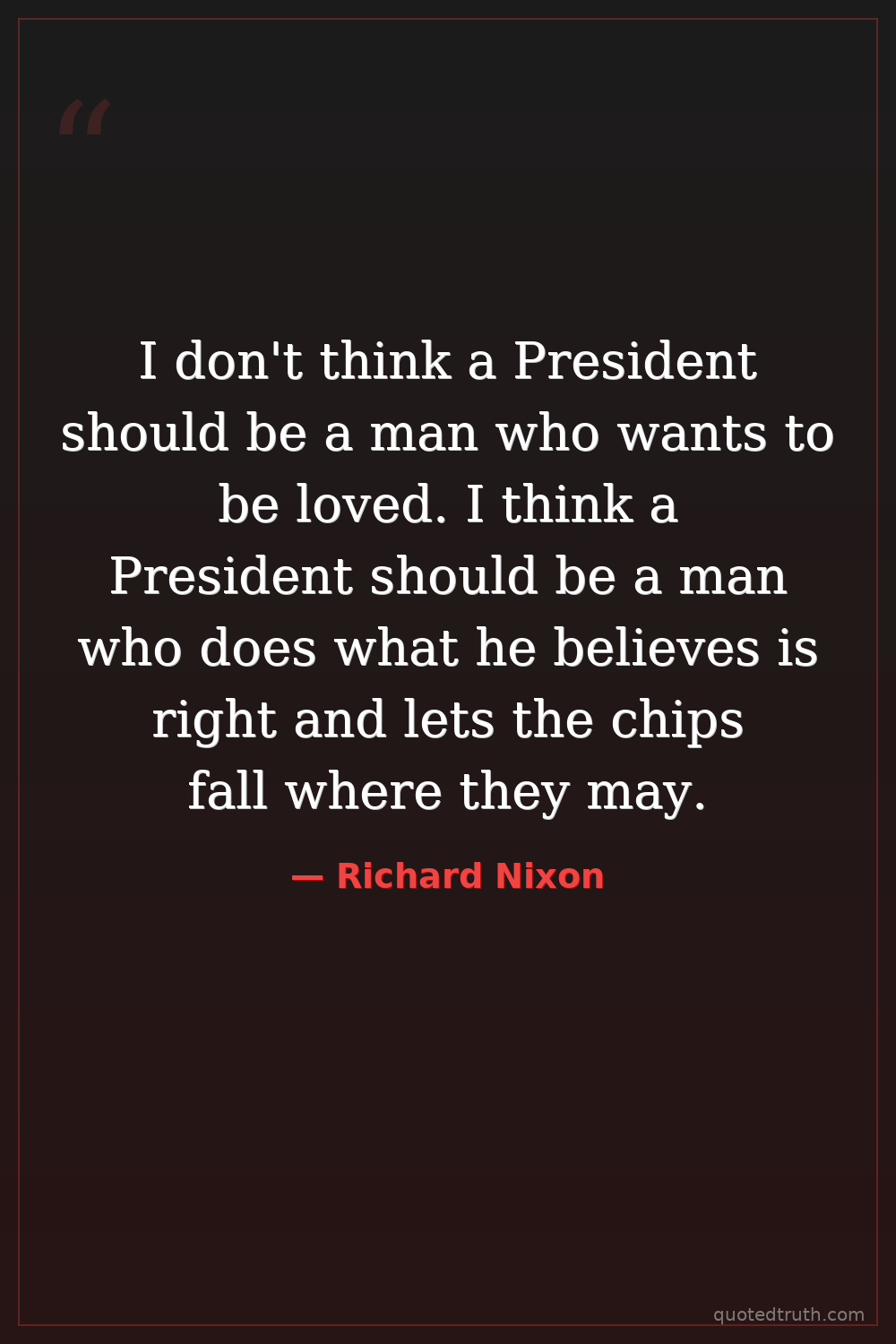 I don't think a President should be a man who wants to be loved. I think a President should be a man who does what he believes is right and lets the chips fall where they may.