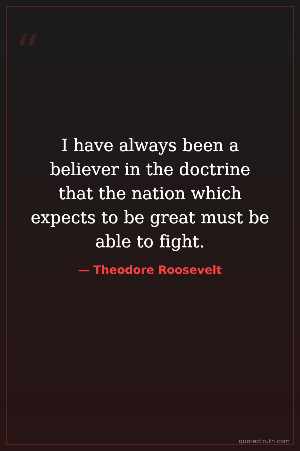 I have always been a believer in the doctrine that the nation which expects to be great must be able to fight.