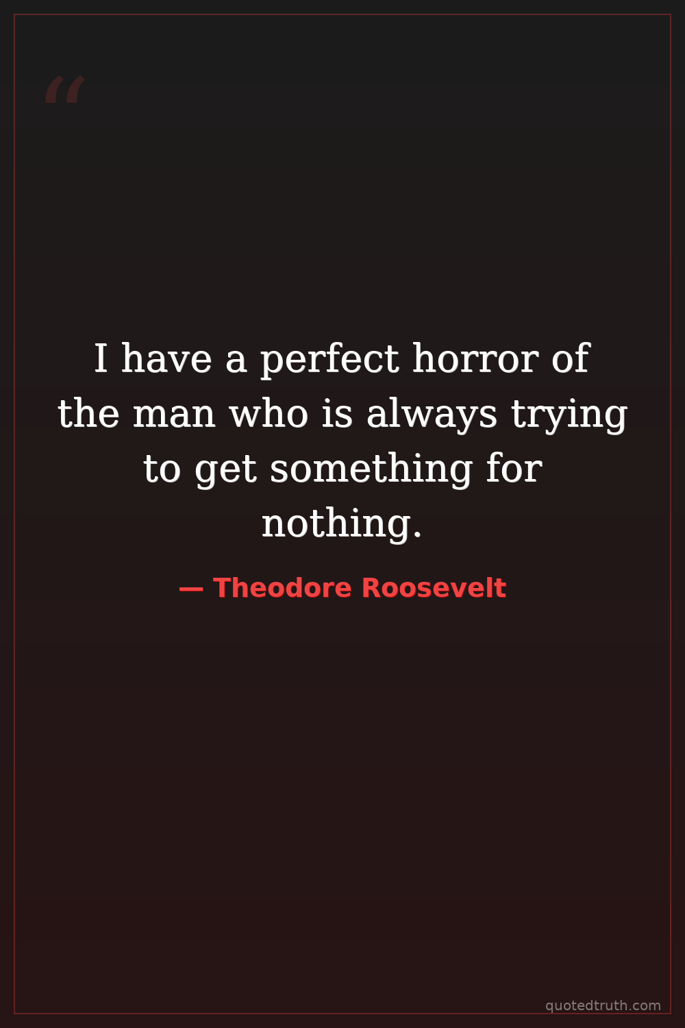 I have a perfect horror of the man who is always trying to get something for nothing.