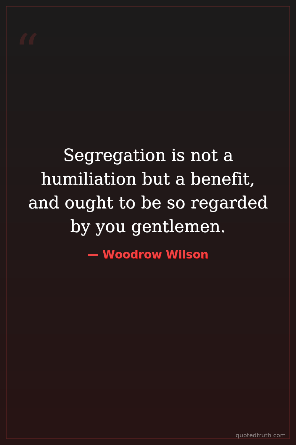 Segregation is not a humiliation but a benefit, and ought to be so regarded by you gentlemen.